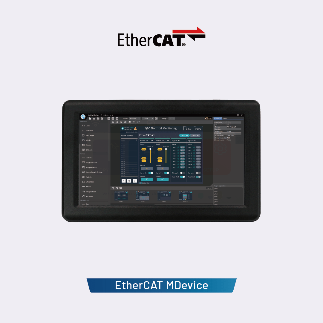ICOP’s QEC-PPC-M series (QEC-PPC-M-090T / QEC-PPC-M-150T) are EtherCAT MDevice with Panel and Touch LCD system, designed for real-time, reliable, and synchronized industrial HMI control. Each model integrates a high-resolution touch-enabled TFT LCD (9″or 15″), providing a rugged case and powerful control core within a compact system.