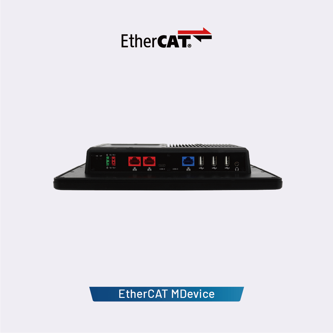 ICOP’s QEC-PPC-M series (QEC-PPC-M-090T / QEC-PPC-M-150T) are EtherCAT MDevice with Panel and Touch LCD system, designed for real-time, reliable, and synchronized industrial HMI control. Each model integrates a high-resolution touch-enabled TFT LCD (9″or 15″), providing a rugged case and powerful control core within a compact system.